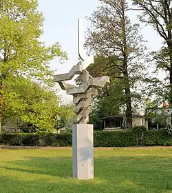 Großplastik[8] | Stahl auf niedrigem Betonsockel, 1965 | Herbert Press | Pichelsdorfer Straße 63, im Hof des Einkaufszentrums (Wilhelmstadt); rund 4 Meter hoch[10] | 52° 31′ 11,2″ N, 13° 11′ 51″ O |