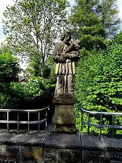 Die Statue des Brückenheiligen Johannes Nepomuk steht unter Denkmalschutz. | |||