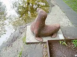 Hans Martin Ruwoldt | Sich leckender Gepard Geschenk an FHH von Firma H. Rost & Co. anlässlich 100 Jahre Übersiedlung nach Hamburg, gleiches Objekt in Altona und Billstedt. 2019 aus dem Harburger Stadtpark entfernt und nach Restaurierung am Harburger Binnenhafen aufgestellt. |