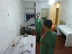 Der chinesische Künstler Ai Weiwei verließ sein Heimatland 2015, nachdem er 2011 ohne Anklage inhaftiert worden war. Bereits 2008 war er bei Recherchen zum politischen Versagen im Kontext mit dem Erdbeben in Sichuan angegriffen und schwer am Kopf verletzt worden. Ai Weiwei greift unter anderem kommunistische Propaganda, Überwachung, Zensur und Emigration künstlerisch auf.[15]