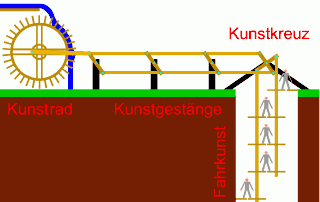 Das Kunstgestänge stammt aus der Zeit vor Erfindung von Dampfmaschine und Elektrizität. Mit dem Kunstgestänge war es möglich, Fahrkünste und Pumpenkünste aus einer gewissen Entfernung zu betätigen und dabei zugleich die Drehbewegung eines Wasserrads (Kunstrad) über einen Kurbeltrieb in eine Pendelbewegung umzuwandeln.[3]