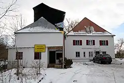Das Wohngebäude ist ein etwa 11 m × 13 m großer zweigeschossiger Bau mit Walmdach.
