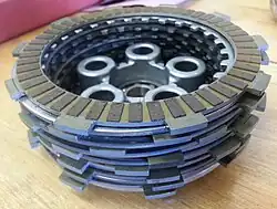 Kupplungsbeläge sind die Reibflächen innerhalb einer kraftschlüssigen Kupplung, über die Drehmoment und Drehzahl übertragen werden. Sie bestehen aus hitzebeständigem und reibfestem Material,[1] sind meist 4–6 mm dick und werden heutzutage meistens verklebt. Verschrauben und Vernieten[2] sind veraltete Methoden, da die Reibflächen nicht voll abgenutzt werden können. Die Haltbarkeit ist von der Länge der Reibzeit, dem Material, der Belagstärke[3] und dem zu übertragenden Drehmoment abhängig.
