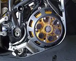 Der bei Motoren mit quer liegender Kurbelwelle seitlich angebrachte Kupplungsdeckel erlaubt die Wartung der Kupplung, zum Beispiel zum Wechsel verschlissener Kupplungsscheiben. Formgebung, Oberflächenbehandlung und verwendetes Material (z. B. kohlenstofffaserverstärkter Kunststoff oder Magnesiumlegierungen) des Kupplungsdeckels sind wichtige Gestaltungsmerkmale eines Motorrades.