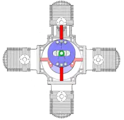 - ↑ Patent US2122677A: Internal combustion engine. Angemeldet am 12. Mai 1936, veröffentlicht am 5. Juli 1938, Erfinder: Russell L. Bourke.