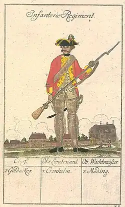 - ↑ Raspe (1763) S. 36 Regiment von Goldacker