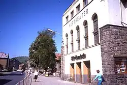In zweijähriger Bauzeit wurde dann das bis heute erhaltene Gebäude neu errichtet. Das zweigeschossige Haus erhielt auch einen Saal mit gesondertem Bühnenhaus und rund 800 Plätzen, der ab 1913 als Kurtheater betrieben wurde.[3] Bedeckt ist das Gebäude von einem Mansardwalmdach. Die Dachgauben im Mansardgeschoss sind rundbogig ausgeführt.