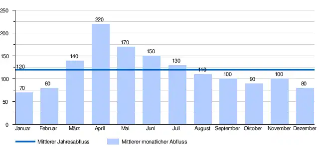 - ↑ a b Mittlere Abflüsse (m³/s) und Abflussregimetyp für das Gewässernetz der Schweiz (Bundesamt für Umwelt BAFU)