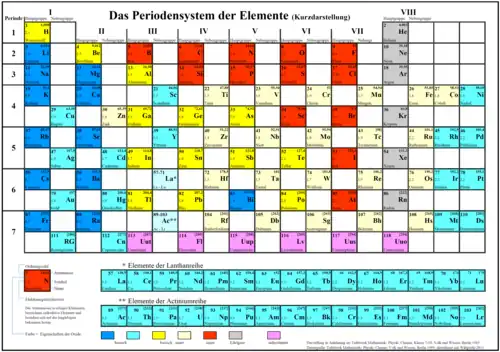 Diese Darstellung des Periodensystems wurde vor allem in älteren Lehrbüchern verwendet, ist aber heute kaum noch zu finden.