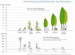 Auf Kurzumtriebsplantagen basierende Bioenergie-Wertschöpfungsketten zur Strom-, Wärme- und Kraftstoffproduktion ermöglichen eine wesentlich höhere CO2-Vermeidung gegenüber traditionellen Bioenergieverfahren. Dies ist durch die extensive Bewirtschaftung bedingt, die dazu führt, dass der Energieinput in Form von Dünge- und Pflanzenschutzmitteln bzw. Maschineneinsatz äußerst gering ist. Auch die CO2-Vermeidungskosten betragen nur einen Bruchteil, im Vergleich zu Biokraftstoffen aus Raps und Getreide oder Biogas aus Maissilage. Der Wissenschaftliche Beirat Agrarpolitik beim Landwirtschaftsministerium schreibt in der Studie: Nutzung von Biomasse zur Energiegewinnung – Empfehlungen an die Politik: „Die Politik könnte (…) durch einen Kurswechsel in der Förderung erreichen (mehr Biogas auf Güllebasis sowie Strom und Wärme auf Basis von Hackschnitzeln aus KUP), dass bei gleichbleibendem Einsatz von Ressourcen und Flächen der Beitrag der Bioenergie zum Klimaschutz mehr als verdreifacht würde.“[21]