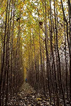 In einer Kurzumtriebsplantage werden schnellwachsende und stockausschlagsfähige Baumarten, vor allem Pappeln (Gattung Populus) oder Weiden (Gattung Salix) eingesetzt. Die Forschung und Züchtung konzentriert sich dabei auf Baumarten, die für gemäßigtes Klima geeignet sind.[1]