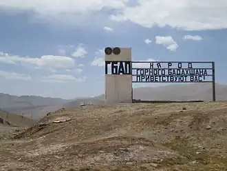 - ↑ Wortlaut (auf Russisch): „Das Volk von Berg-Badachschan begrüßt Sie.“