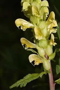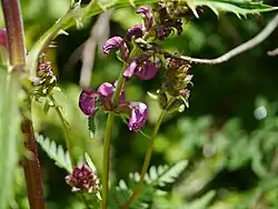 - ↑ a b c d e f g h Pedicularis im Germplasm Resources Information Network (GRIN), USDA, ARS, National Genetic Resources Program. National Germplasm Resources Laboratory, Beltsville, Maryland.
