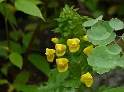 Die zwittrigen Blüten sind zygomorph und besitzen eine doppelte Blütenhülle. Die Kelchblätter sind röhrig bis glockenförmig verwachsen; der Kelch ist oft mehr oder weniger zweilippig und meist tief in selten zwei- bis meist fünf Kelchzähne gespalten. Die purpurfarbenen, roten, gelben oder weißen Kronblätter sind verwachsen; die Krone ist stark zweilippig. Bei den meisten Arten sind die Blütenkronen leicht schraubig und etwas zur Seite aus der Mittellinie verdreht, und zwar von vorn betrachtet nach links. Die Oberlippe umhüllt kapuzenartig die Staubbeutel, ist seitlich zusammengedrückt, gerundet oder gestutzt und endet in Zähnen oder einem Schnabel. Die drei Kronlappen der Unterlippe sind meist ausgebreitet und im Knospenstadium außerhalb der Oberlippe. Es sind vier Staubblätter vorhanden. Die Staubfäden sind kahl oder flaumig behaart und die Staubbeutel können eine Stachelspitze besitzen. Die Narben sind kopfig.[1]