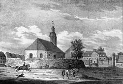 - ↑ Cornelius Gurlitt: Kirche zu Leipzig-Lössnig. In: Beschreibende Darstellung der älteren Bau- und Kunstdenkmäler des Königreichs Sachsen. 17. Heft: Stadt Leipzig (I. Theil). C. C. Meinhold, Dresden 1895, S. 212.