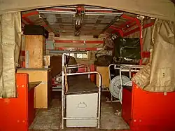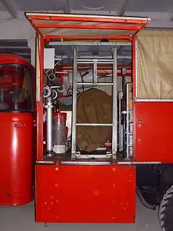 Im Aufbau befinden sich die Sitze für den Trupp, Gerätekästen und, zur besseren Entnahme der schweren Geräte, ein nach hinten ausziehbarer Geräteschlitten. Der Geräteschlitten ist auf einem ausziehbaren Rollrahmenfahrgestell gelagert, dieser hatte an einer Seite zwei schwenkbare Räder und auf der anderen Seite zwei Rollen, die in U-Profilschienen laufen. Auf dem Gestell sind folgende Geräte untergebracht: