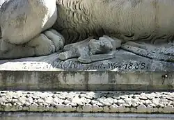 „Der Sieg wird bei diesem Denkmal durch die Trophäen, die unter der riesigen Pranke des Löwen fast verschwinden, nur angedeutet. Der Todeskampf und die Trauer bilden den zentralen Inhalt des Denkmals. Die Gestalt des von einer Lanze durchbohrten Löwen, insbesondere das fast menschlich wirkende Tiergesicht mit seiner schmerzverkrampften Physiognomie, ist von einem großzügigen Realismus.“[3]