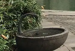 Ein Trinkbrunnen mit einer in Schlangenkopfform gestalteten Röhre stammt aus dem Jahr 1945. Der Brunnentrog besteht aus Sandstein und ruht auf einem Sockel aus Bruchsteinen.[5]