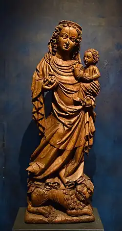 - ↑ bayerisches-nationalmuseum.de: Maria mit Kind auf einem Löwen stehend (Figur)