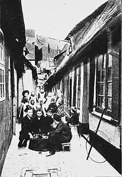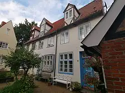 | Krusenhof | Engelsgrube 26 | 1540 als „Albert-Klever-Gang“ erwähnt, 1545 von Hans Kruse als Armengang mit Wohnungen gestiftet.[3] Der kleine Hof, 1597 mit zweigeschossigen Fachwerktraufenhäusern umgebaut, wurde 1994 bis 1996 grundlegend saniert. |