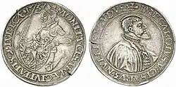 Die große Akzeptanz des zu Beginn des 16. Jahrhunderts erstmals ausgeprägten Talers veranlasste auch Lübeck unter Bürgermeister Nikolaus Brömse, dieses neue Großsilbernominal 1537 erstmals herzustellen.[11] Es pendelte sich ein Gesamtsystem ein, nach dem der Gulden den Wert von 2⁄3 Taler erhielt. Der Gulden entsprach weiterhin 32 Schillingen (gleich 2 Mark) und der Taler 48 Schillingen (gleich 3 Mark). Bei diesem Grundsystem blieb es bis zum Ende der Lübecker Silbermünzenprägung im 18. Jahrhundert.
