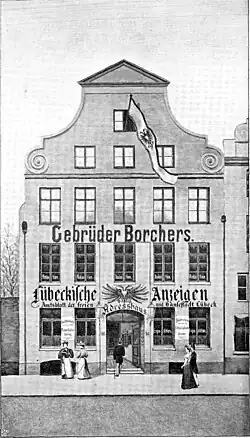 Ab 1872 erschien im Verlag Gebrüder Borchers die Lübecker Zeitung als politische Ergänzung zu den Lübeckischen Anzeigen. Sie etablierte sich im Gegensatz zu ihren Vorgängern und ging 1891 in den Lübeckischen Anzeigen auf.[7]