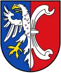 Blasonierung: „Gespalten von Blau und Rot; vorn ein halber silberner (weißer) golden (gelb) bewehrter Adler am Spalt; hinten eine halbe silberne (weiße) Lilie am Spalt.“ |