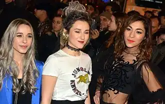 ![]() Von links: Élisa Paris, Juliette Saumagne und Lucie Lebron Die Gruppe bei der Verleihung des Globes de cristal 2017 | |