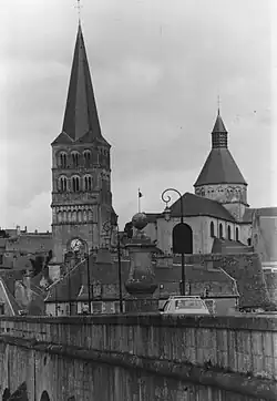 1429 wurde die Stadt einen Monat erfolglos von Jeanne d’Arc belagert. Im Jahr 1559, in der Zeit der Hugenottenkriege wurden durch ein Feuer große Teile des Klosters, seiner Kirche sowie der Stadt vernichtet und im Jahr 1569 wurden alle Mönche des Klosters von den Hugenotten ermordet.[3]