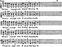 - ↑ a b Frederick William Sternfeld: The First Printed Opera Libretto. In: Music & Letters. Band 59, Nr. 2. Oxford University Press, Oxford 1978, S. 123, JSTOR:734132.