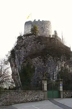 Auf einem Felssporn steht die Tour des Comtes de Genève, der letzte Überrest der mittelalterlichen Burg (1258) der Grafen von Genf.