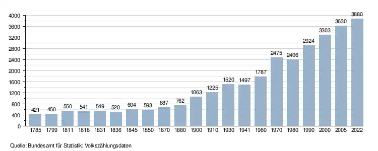 - ↑ Daten der Eidgenössischen Volkszählungen ab 1850 nach Gemeinden. (XLSX; 10 MB) Bundesamt für Statistik, Neuchâtel, 12. Juli 2024, abgerufen am 26. Juni 2025 (Öffnung in Excel nur über "Anhang/Excel-Datensatz" möglich).