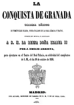 La conquista di Granata (deutsch: Die Eroberung von Granada, spanisch: La conquista de Granada) ist eine Oper von Emilio Arrieta. Das Libretto stammt von Temistocle Solera. Die Uraufführung fand am 10. Oktober 1850 im Teatro de Real Palacio in Madrid statt. Musikalisch ist die Oper „ein Prachtstück des Belcanto“[1] mit zahlreichen Chor-Szenen.