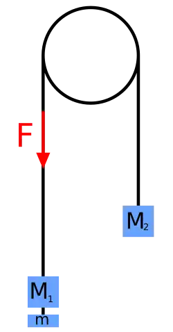 Bei der Atwoodschen Fallmaschine betrachtet man zwei Punktmassen im Gravitationsfeld der Erde, die über eine Rolle in der Höhe h aufgehängt und durch ein Seil der Länge l verbunden seien. Die Zwangsbedingung lautet in diesem Fall: