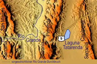 Talformen und Spuren in der Serraníe Pirirenda deuten darauf hin, dass in vorgeschichtlicher Zeit der Río Grande die Sierra Pirirenda in einem Cañon direkt bei der Laguna Tatarenda überwunden hat und sich erst zwischen Serranía Pirirenda und Serranía Caipipendi nach Nordosten gewandt hat. Vor etwa zwei bis einer Million Jahren wurde die Serranía Pirirenda durch Hebungsbewegungen in der Erdkruste schneller angehoben, als die Erosion des fließenden Wassers dagegenhalten konnte, so dass sich das Wasser des Río Grande westlich der Serranía Pirirenda aufstaute und zwanzig Kilometer weiter nördlich einen Durchlass durch die dort niedrigere Bergkette finden konnte.