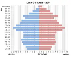- ↑ Datenbank Zensus 2011, Lahn-Dill-Kreis, Alter + Geschlecht ( vom 22. September 2021 im Internet Archive)