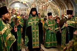 Lahnfaden ist ein mit Lahn (geplätteter Metalldraht oder schmale Streifen dünner Folie) spiralförmig umwickeltes textiles Garn[1] zur Herstellung prunkvoller Textilien mit metallisch glänzenden Oberflächen.[2]