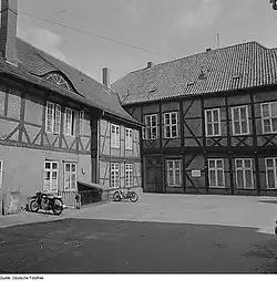- ↑ Jan Schirmer: Fachwerk aus dem 16. Jahrhundert in der Schweriner Puschkinstraße 36. Denkmal des Monats August 2007. In: Landesdenkmalpflege.