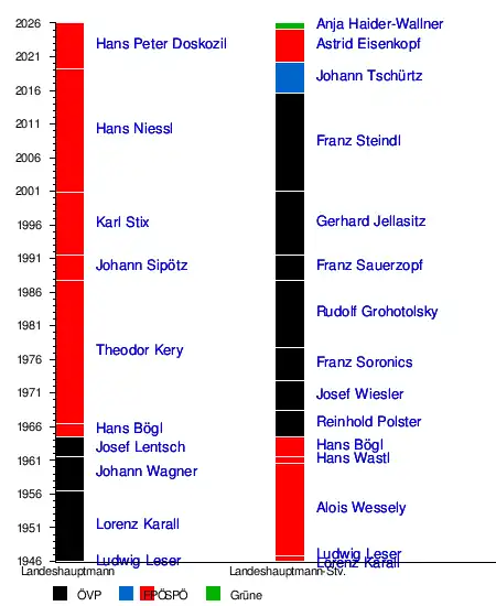| Landeshauptmann | Partei | Amtsantritt | Regierungsende |