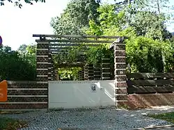 Der auf dem hinteren Teil quer zum langgezogenen Grundstück (25 m × 60 m) errichtete, flachgedeckte, kubische Bau teilt den Garten in zwei Bereiche und ist durch zwei seitliche an den Grundstücksgrenzen verlaufende Pergolen jeweils mit dem großen Vorder- und dem kleineren rückwärtigen Garten verbunden. Die Pergolen sind wie das Haus selbst aus dunklem Backstein-Mauerwerk mit Querhölzern gebaut. Eine mit der vorderen rechten Pergola verbundene Mauer begrenzt den vorderen Garten zur Straße.