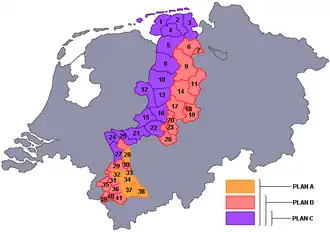 Im Emsland wurde durch die Inbetriebnahme des Kernkraftwerkes Lingen das Atomzeitalter eingeleitet. Das Kernkraftwerk war eines der ersten kommerziellen Kernkraftwerke in Deutschland. Bereits im Jahr 1977 wurde der nukleare Teil des Kraftwerks nach einem Schaden im Dampfumformersystem stillgelegt.[23] Gegen die Errichtung eines Endlagers und einer Wiederaufbereitungsanlage (WAA) für radioaktiven Abfall fand am 29. November 1976 in Wippingen bei Dörpen eine große Anti-Atom-Demonstration statt. Dies war der Höhepunkt des Widerstandes der Region gegen die Pläne des niedersächsischen Ministerpräsidenten Ernst Albrecht.[24] 1988 wurde als Nachfolger das Kernkraftwerk Emsland (KKE) in Betrieb genommen, welches das zweitjüngste deutsche Atomkraftwerk ist.