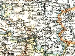 - ↑ Christian Gottfried Daniel Stein: Handbuch der Geographie und Statistik des preußischen Staats. Vossische Buchhandlung, Berlin 1819, Der Regierungsbezirk Merseburg, S. 340 (Digitalisat).