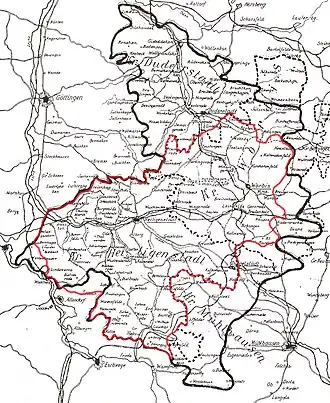 - ↑ Aloys Schäfer, Karl-Ernst Laage, Helmut Godehardt, Maria Hauf: Zur Verwaltungsgeschichte des Eichsfeldes. In: Unser Eichsfeld. 1. Jahrgang 1992, Heft 3, S. 131