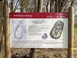 Landsberg wurde zu Beginn des 13. Jahrhunderts von den Grafen von Waldeck gegründet und vermutlich bereits 1231 oder 1232 in den Kämpfen zwischen dem thüringischen Landgrafen Hermann II., bzw. seinem Bruder und Statthalter in Hessen Konrad von Thüringen, und dem Erzbischof Siegfried III. von Mainz zerstört. Die Bewohner siedelten zum Teil in die Kolonie Bifangen um, heute Wüstung bei Landau, wo ihnen von Graf Adolf I. von Waldeck und dem Kloster Aroldessen erhebliche Rechte eingeräumt wurden.[2] Landsberg gelangte später, wie der meiste mainzische Besitz in Nordhessen, in den Besitz der Landgrafschaft Hessen. Funde lassen vermuten, dass die Anlage im 14. Jahrhundert noch einmal für einige Zeit Bewohner hatte.[3]