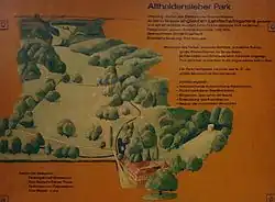 - ↑ Quelle: Auskunftstafel am Parkeingang in Althaldensleben im Rahmen der "Gartenträume", Stadt Haldensleben