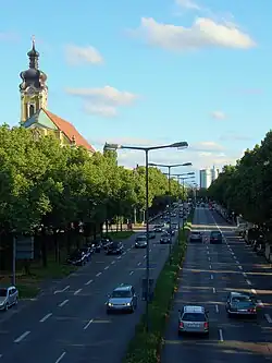 | Blick nach Süden. Links: St. Theresia; hinten: Central Tower München | |