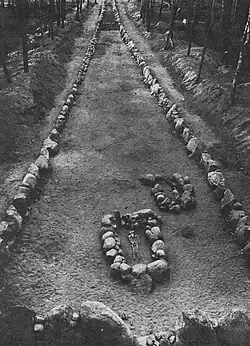 Unmittelbar über den Gräbern wurde eine Ansammlung von Keramikscherben, Feuerstein-Werkzeugen, Fragmenten von Menschen- und Tierknochen sowie Holzkohle entdeckt. An anderen Stellen der Hügelschüttung wurden weitere Keramikscherben, ein Spinnwirtel und eine Axt aus Felsgestein gefunden.