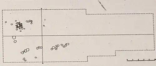 Unmittelbar nördlich hiervon wurde ein zweites Grab festgestellt. Es war ähnlich aufgebaut wie das erste, aber etwas kleiner und weniger sorgfältig ausgeführt. Es wies ebenfalls eine Bestattung in gestreckter Rückenlage mit dem Kopf im Nordwesten auf. Grabbeigaben konnten hier nicht festgestellt werden.