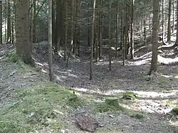 Sie liegt im Wald auf 547 m Höhe, ca. 2 km nordöstlich der Ortschaft Marktleugast, nahe der Großen Koser und 500 m nördlich der Bundesstraße 289.