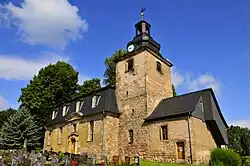 Das Ortsinnere ist geprägt durch die Dorfkirche St. Maria-Magdalena, die auf einem Hügel über dem Dorf thront.